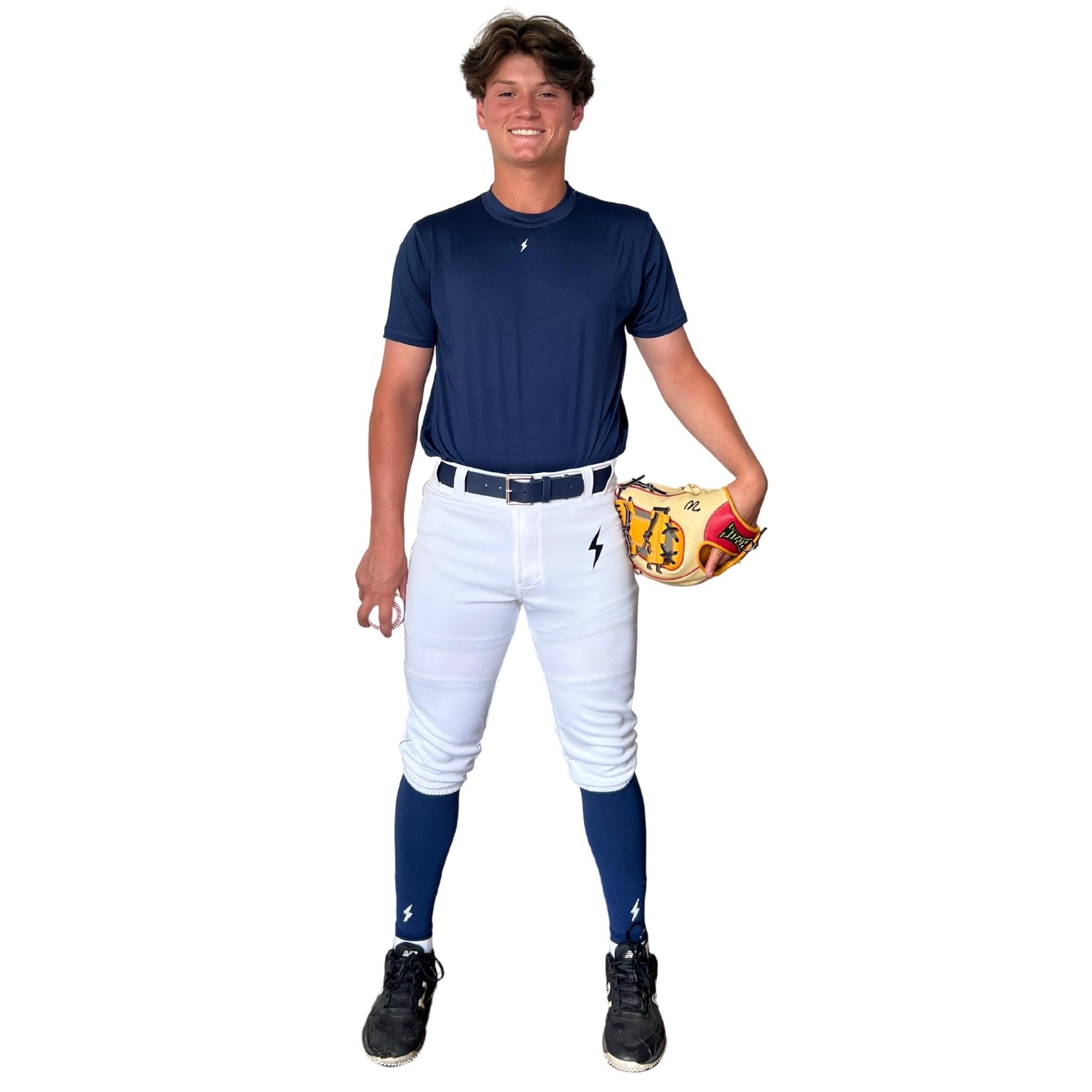 BRUCE BOLT Premium Pro Baseball Knicker – WHITE w/ Navy